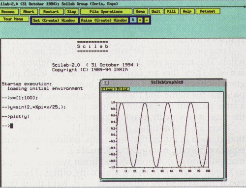 When I first installed Linux, I was delighted to find that f2c (with the shell programs f77 or fort77) made FORTRAN coding possible and almost transparent, despite the lack of a FORTRAN compiler. But, after trying a number of publicly available graphics programs, I was unsatisfied with plots of my FORTRAN results. Also, I missed the mathematical power of such programs as MATLAB, which I also (and primarily) use for its great graphics. Then I tried scilab, which was released recently for Unix and Linux by INRIA (Institut National de Recherche de Informatique et en Automatique) of France. Although the graphics aren't as good as MATLAB's, scilab did solve most of my problems; so much so, that I installed it on my workstation at work as well.