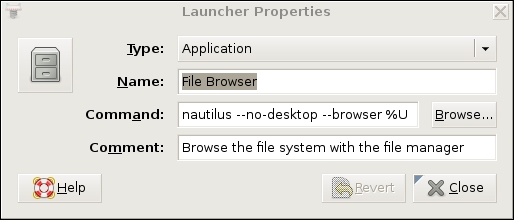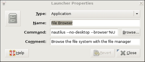 Figure 1 shows the Launcher Properties, not for the GNOME System Monitor, but instead for the GNOME File Browser, which is a better example, because its launcher entry includes some command-line options. Obviously, all such options also can be used when starting X applications over SSH.