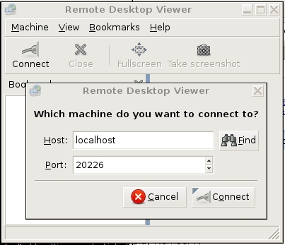 Figure 4. Using vinagre to Connect to an SSH-Forwarded Local Port