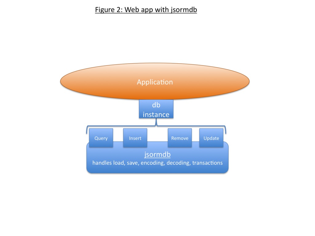 In summary, jsormdb provides Web browser application developers the ability to isolate data management from business and presentation logic cleanly, to utilize full transaction semantics easily and to query, update and modify data, including indexing, simply and efficiently.