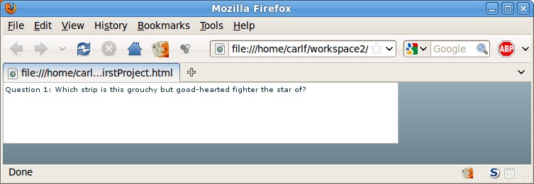 In my next article on this discussion of Linux-based Flash/Flex development, I will evaluate Sprouts, a Ruby-centered development environment. Unlike Flex Builder, Sprouts is released under an open-source license (the MIT license). Sprouts is a command-line-only compiler and debugger, built around the Rake build language. I will give an overview of using Sprouts, how to port Flex Builder projects into the Sprouts environment, and I'll also finish the work on my Webcomics quiz, reading the questions from a server-based database and improving the appearance of the screens.