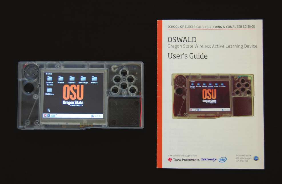 The OSWALD is a handheld ultra-mobile PC designed to be accessible and affordable to students, while incorporating many new technologies seen in the mobile device market. The OSWALD is an open platform meant to open up the creative space for student projects. With its relatively novel form factor, students are given the opportunity to explore and push the boundaries of computing again, as well as explore contemporary interaction techniques through hardware, such as a touchscreen and accelerometer. The device was carefully designed to balance power and performance with cost, equivalent to a college textbook.