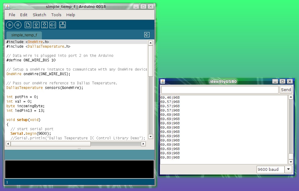 Now that you've installed and tested kst with a static data file, it's time to program the Arduino to sense the environment (temperature and light level), then stream the data out over the USB line to the notebook.