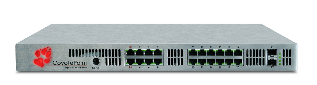 I tested the E650GX (V8.6) load-balancing appliance for ease of use, feature set, performance and suitability to task. I found that the device is very simple to install; the physical portion of the installation consists of plugging in the device and routing the appropriate Ethernet cables to the unit. The E650GX is Coyote Point's top-of-the-line appliance and sports 22 Gigabit Ethernet interfaces for connecting server clusters.