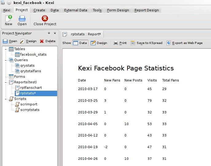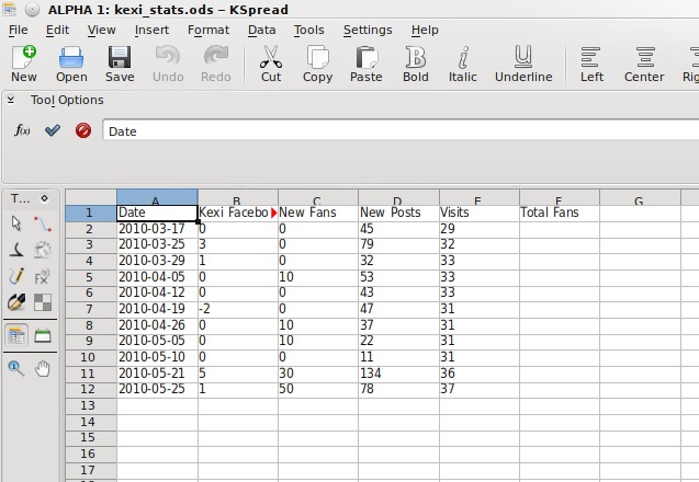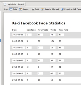 To be a useful guide, it's helpful to work on a real use case. As the owner of the Kexi Facebook page (see Resources), I get weekly updates via e-mail with various statistics. The aim of this article is to get this data out of these e-mail messages and into a Kexi database to be able to perform queries and reports to show trends over time.