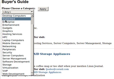 Over at the Linux Journal Web site, our very own Joe Krack keeps a handy database of vendors, systems and even sales promotions from Linux-friendly companies. They are vendors we've personally worked with, and they offer deals unique to Linux Journal readers. It's not a big list of advertisements; rather, it's a big list of products from companies we trust. Check it out over at www.linuxjournal.com/buyersguide. To be fair, I wouldn't recommend buying candy from them either. The “chips” they sell aren't chocolate chips.