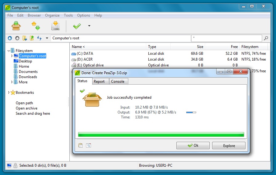 PeaZip can create the standard types of compressed files/archives: ZIP, GZ and 7Z. Plus, it creates a few that you don't often see in a desktop GUI tool: BZ2 and TAR. In addition, it creates ARC, PAQ/ZPAQ, PEA, QUAD/BALZ and UPX files/archives. On the decompression side, PeaZip goes ballistic and handles (currently) 123 different archive/file types. In other words, if it's compressed/archived, it's unlikely that PeaZip won't be able to deal with it.