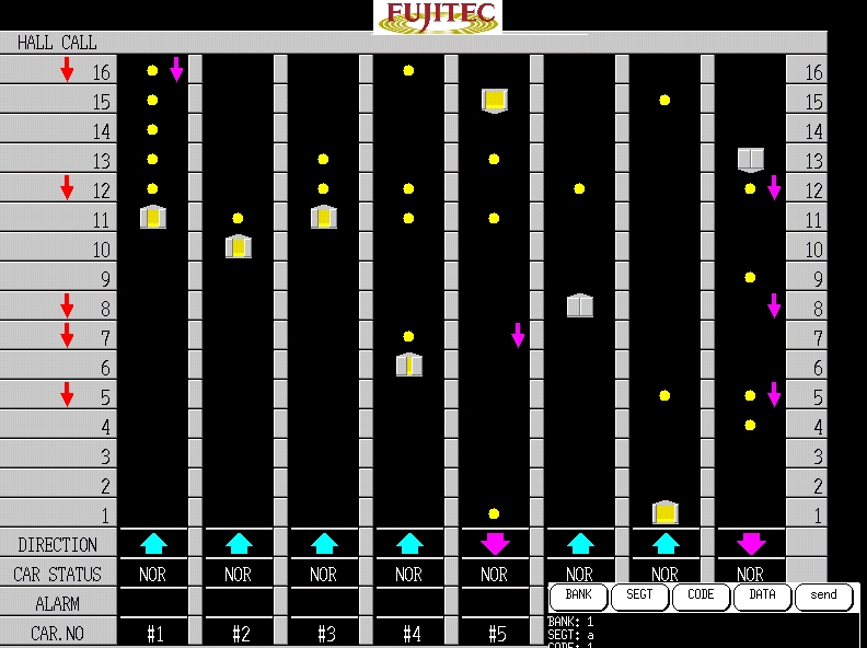 The modern elevator group controller is rather sophisticated; it has to run difficult, optimal-scheduling algorithms in real time. The latest Fujitec models use neural networks for on-line learning and optimization. Without proper tools, the support personnel who perform installation and testing tasks wouldn't understand what is happening with the elevator group.