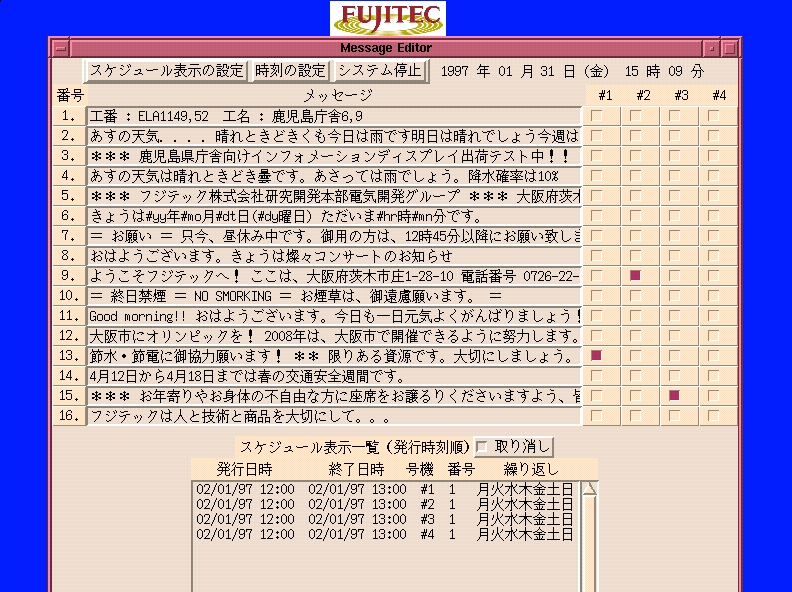 Another application, a user-interface system for editing scrolling messages in elevator cars, is shown in Figure 2, but we do not have space to introduce it in detail. (Notice the Japanese characters—Linux works fine in Japan, too.)