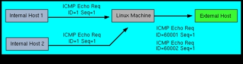Actually, ping could work. ICMP echo request/echo reply messages can be masqueraded for. The key is the identifier field in the ICMP message. The problem is matching replies that come back from the external networks to the originator. The masquerading would function as shown in Figure 1.