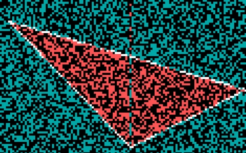 The test program (Listing 2) draws a random 40-sided polygon and then picks random points to throw at the inpoly() routine. Points the routine says are inside the polygon it draws red, points outside are blue.