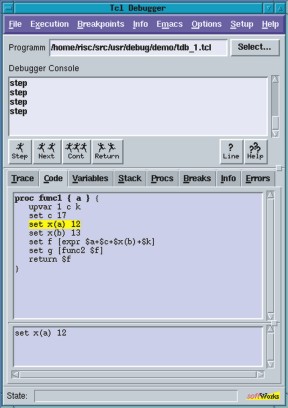 Now all of the previously written tests come in handy—I can check if the new code works correctly with nearly no effort. Both of the routines are quite a bit of work as they do some very tricky operations and pointers always point to somewhere unexpected. Sure it's nice to have a debugger for Tcl (see Figure 3), but without a C debugger, the life of a C programmer would be truly difficult.
