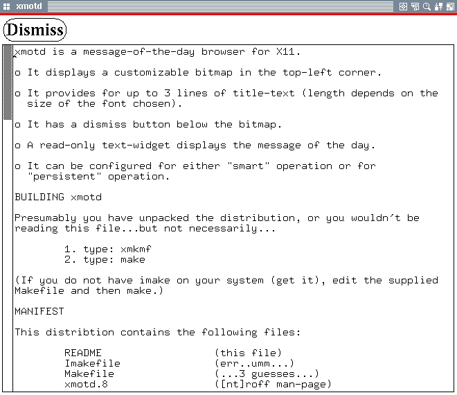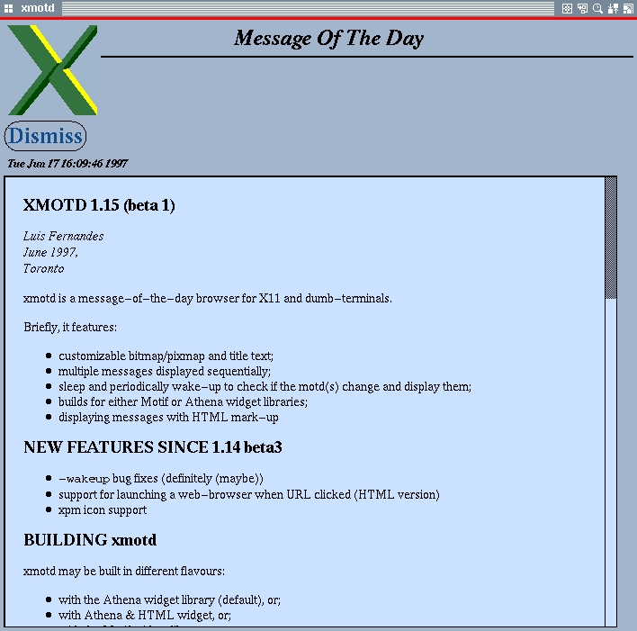 Figure 1. xmotd 0.1 Screen Dump