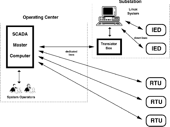 In the Operations Engineering group, we realized that our dial-up SCADA system (see Figure 1) provided the same functionality as those commercial substation controllers, if you eliminated the dial-up system and moved the PC and the translator device out into the substation (see Figure 2). The translator device is necessary to communicate with our existing SCADA Master control computers using an ancient bit-oriented protocol (over 1200bps leased lines, no less). However, these control computers are due to be replaced with a new computer system over the next couple of years—more on that later.