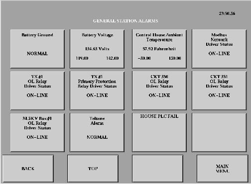By the way, an annunciator panel is just a hierarchical display of alarm points, in which an alarm at a higher level means one or more points at a lower level are in an alarm state. The annunciator panel initially displays the topmost level of alarms as a grid of labeled boxes (green if all lower alarms are normal, red if at least one is in alarm). A substation technician can touch one of the boxes to display the next lower level of alarms; each one of those alarms can consist of additional individual alarms, etc.