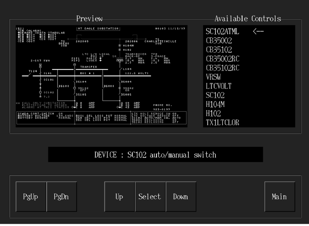 In most cases, the substation controller computer is rack-mounted along with the rest of the equipment in the substation “control house” (a small building intended mainly for protection from the elements). It has no keyboard and no monitor (try that with your Windows box). All system administration is performed remotely via dial-up login; database and program updates are distributed using UUCP. In some cases, the installation includes a touch-screen monitor to provide a local operator interface, consisting of an annunciator panel (see Figures 4 and 5) and even an interface for performing device controls (see Figure 6).