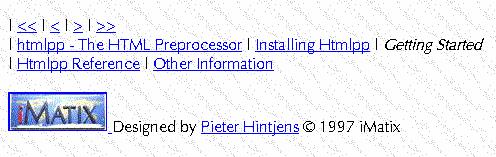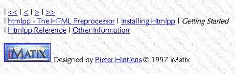 To install and use htmlpp, you need Perl version 4 or 5. Download htmlpp from https://www.imatix.com/ and unpack the .zip file. The package comes with HTML pages describing how to install and use. If you have questions, comments or suggestions, don't hesitate to send me e-mail.