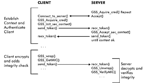 Figure 1 shows some segments of GSSAPI code. In the code segment, the client is authenticated to the server and data is protected during transit. The segment highlights the fact that it only takes a dozen or so extra lines of code in your client and server application to secure them (other than variable declarations). In the code segment only the client is authenticated, although with a few extra lines of code the server could also be authenticated to the client.
