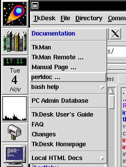 Rather than provide a user's manual or specific customization tips, which you can learn by reading TkDesk's excellent documentation, I'll describe in this article why I think TkDesk is such a useful and important Unix tool. As an example, this morning I logged into my computer through xdm. All I have scripted to start automatically is TkDesk and a few utility applications, like xautolock and xsysinfo. After seeing the TkDesk startup screen, I am presented with the AppBar (see Figure 1) and a few file browsers (see Figure 2), positioned where I left them the last time I was logged in. From the mailbox icon I see that I have e-mail. Clicking the mailbox starts exmh, and I read the messages that have arrived since yesterday. Someone has found an error in a CGI script. Figuring it won't take long to find the problem and fix it, I start up XEmacs and Netscape, again by clicking icons in the AppBar. I point one of my file browsers at the directory containing the CGI script and another to a development directory. By clicking and dragging with mouse button two, I make a copy of the script into my development directory (see Figure 3). I then drag this copy onto the XEmacs icon in my AppBar, which loads the script into my previously started XEmacs session. Looking through the code I realize that I may have flipped the arguments to a CGI module function that I called. Clicking with button three on the Library icon in the AppBar shows my customized documentation menu (see Figure 4). I select the reference to my locally installed Perl documentation. A Netscape window opens up listing the directory and I click on the cgi.pm.html link. Seeing my error, I make the necessary changes. I also need to check another Perl script. This time, instead of dragging the script onto the XEmacs icon, I click the file once to select it, then choose the “Open File New Frame” I have configured under the XEmacs menu. This creates a new XEmacs window displaying the script.