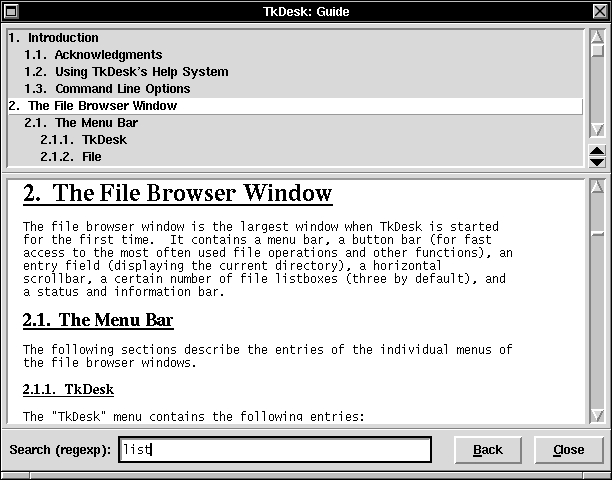 While the core of TkDesk is the AppBar and file browser, a collection of smaller tools is also supplied. My favorite is the convenient help viewer, which can parse the text representation of a Linux HOWTO document (see Figure 6). One of the initial default configurations is a global pattern to recognize gzipped HOWTO documents, unpack them and display them in this help viewer.