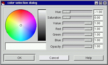 Like all GUI tool kits, gtk+ provides a variety of GUI components, a.k.a. widgets. One thing that sets gtk+ apart from tool kits such as Motif is the breadth of the widgets provided. Naturally, all tool kits provide some form of a button widget. gtk+ also provides components such as tabbed notebooks and fully functional color pickers not included in the core widgets of other tools kits. Screen shots are provided in Figures 1 and 2 as examples of the appearance of gtk+ widgets.