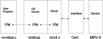 If the kernel seems to work, you might test the driver by writing one or more user programs, i.e., mrv4test.c which call the driver functions: