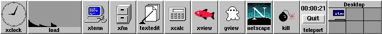 It creates an invocation of PPPui that is swallowed into the button panel after the connection is established, as shown in Figure 2. (Unfortunately, the semantics of FvwmButtons cause the button to appear in a constantly-pressed state when the connection is not active, which is a bit distracting.)