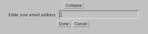 This method simply searches up the component tree until it finds the top window (your applet most likely, but it could be a free-floating window or an application frame). Once the topmost window is found, I ask it to validate. This will cause the layout to be re-computed (items that are not visible will not be included) and re-displayed. An example of the collapsing pane widget is shown in Figure 8. This example uses the e-mail entry widget as the component that is collapsed.