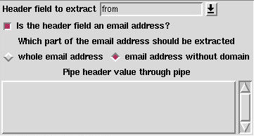 With this action, you can save the letter to a file. The file name is specified with a FillOut widget, just as you specified the name of a file for backups. This time, however, you have two additional features: you can use the content of a header field, or you can use the output from a command. In Figure 5, you can see how to select a header field to extract as part of the file name.