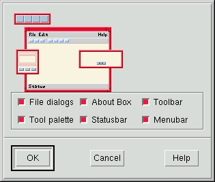 AppGuru is the interface to previously designed templates for GUIs. Initially, it contains the default template which enables you to quickly create applications with standard components, such as a menu-bar, a tool bar and file selection dialogues. At first the AppGuru looks like a cute toy, but its power lies in its configurability. Each design can be changed into a template. Using X-Designer resources, the new template can be incorporated into the AppGuru menu with control over the separate components, which may or may not be added into the new application. The freedom with resources is great, so the X-Designer administrator in a large software company can add pixmaps which represent components. Users can easily select ones which are really needed. I think this is a great tool for a software engineering environment, where several pre-designed interfaces can be set up according to internal policy. Company information dialogues and standard application parts can be automatically inserted into new designs.