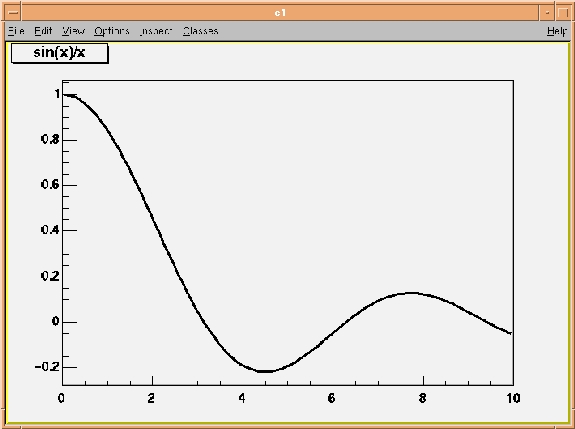 root [0] TF1 f1("func1", "sin(x)/x", 0, 10)
