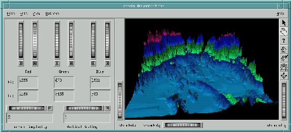 The file format read in is basically an ASCII PGM file containing three values representing the maximum X, Y and Z values, followed by all elevations. This is handy because the file can be read with the xv command and saved in any other graphical file format needed.