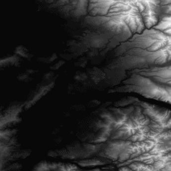 Originally, the terrain represented in Figure 6 was the pixmap shown in Figure 7, with lighter areas having more height.