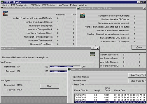 Maintenance of WAN networks tends to be infrequent but intense. Problems tend to occur at 2:00AM six months after you last touched your BigName router. (You are most likely at home, sitting in your bathrobe, dialed-in to your office. What are the chances you have the manuals at hand?) By contrast, a Linux router uses many of the same tools you work with every day, and you have all of the documentation on-line in the form of man pages or text files. You may not have worked with the router for a while, but you use ifconfig and look at /var/log/messages each day. Even the hardware-specific tools tend to be more fully featured and easier to use. For instance, Figure 2 is a screen showing Linux PPP statistics as monitored from an attached workstation.