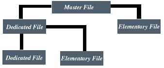 Like PCs, smart cards have a file system which contains a root or master file. All files are identified by two bytes. The master file on smart cards is identified by 3F 00. Dedicated files are similar to sub-directories in that they allow files to have specific paths. Information is actually stored in what is called the elementary file. The elementary file can be defined in different ways, depending on how the user wants it subdivided for storage. The following diagram shows a simple smart card file system.