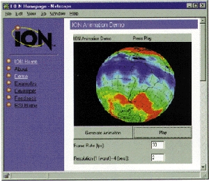 Research Systems, Inc. has announced the release of ION (IDL on the Net) 1.1. ION, which is built on IDL (Interactive Data Language), is designed for high-performance data transfers and implements a client-server architecture. All information is passed between the server and client in a binary, platform-independent network format. ION will be sold as an unlimited-connection license, meaning any number of web-based clients can connect to the ION server at the same time. An introductory price of $6,995 US is valid until December 31, 1998.