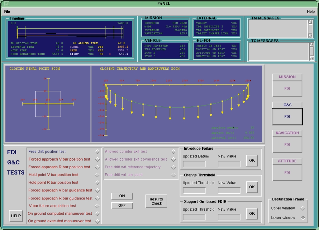 The Failure Assessment subsystem performs the detection and identification of a failure by running a set of automatic tests under the control of the ground operator, are implemented at the mission, guidance, navigation and control levels, and compare both the actual and predicted state with reference corridors for position, attitude, rates, etc. This module archives data in a database.