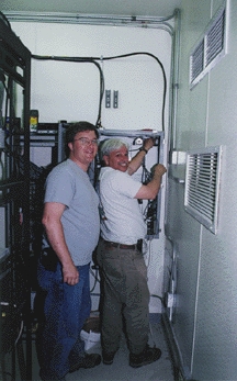 Figure 2. The author (foreground) and Julian Riccomini installing the gateway system.