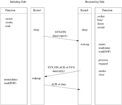Programming for T/TCP is slightly different using socket programming. As an example, the chain of system calls to implement a TCP client would be as follows: