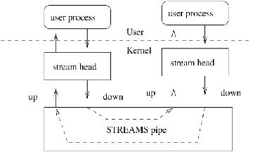 A mandatory STREAM head talks to the user process doing I/O. The head fills the gap between user system calls and the message flow. Thus, a write into the STREAM is handled by the head by sending a message downstream. Conversely, a data message going upstream is used by the head to service read system calls on the STREAM.