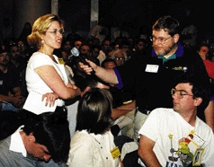 The panel was a distinguished group: Jeremy Allison, one of the lead Samba developers; Larry Augustin, founder of VA Research and member of the Linux International Board of Directors; Robert Hart, from Red Hat Software; Sunil Saxena, from Intel's UNIX Performance Lab; and, of course, The Man himself, Linus Torvalds. (While I know there are a lot of Linux fans who like to pronounce “Linux” with a long “i” sound (LYE-nucks), and despite the fact that Linus himself doesn't care how anyone else pronounces it, he unquestionably did so with a short “i” as in “linen” (LINN-ucks). In Swedish he presumably still pronounces it the third way, roughly “LEE-nooks.”) The discussion was moderated by Michael Masterson of Taos, who traded off questioning duties with Phil Hughes, all-around hairy guy and publisher of Linux Journal.