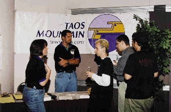 The Future of Linux was set up as a panel discussion and was held at the Santa Clara Convention Center (in the heart of Silicon Valley) on the evening of July 14, 1998. It was hosted by Taos Mountain and the Silicon Valley Linux Users Group (SVLUG), and was sponsored by them, Intel, Red Hat, Linux Journal and VA Research. Apparently it was considerably more popular than Taos expected; people stood in line for up to an hour to register, and the free food and free VA Research/Linux T-shirts ran out. I didn't get a firm count, but Taos said 850 people had returned their RSVP, and my estimate is 700 to 900 attended.