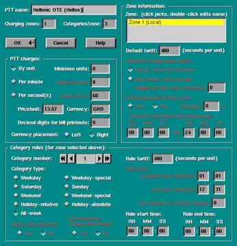 The phone company database supports all (known) PTT attributes applicable while logging phone-call costs, and saves its information in a separate file in the subdirectory /.xisplogs in the user's home directory.