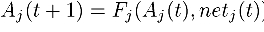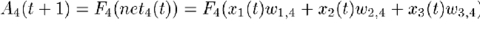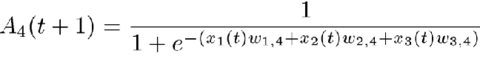 which always takes on values between 0 and 1. Generally, the activation Aj for the jth PE at time t+1 is dependent on the value for the weighted sum netj for time t: