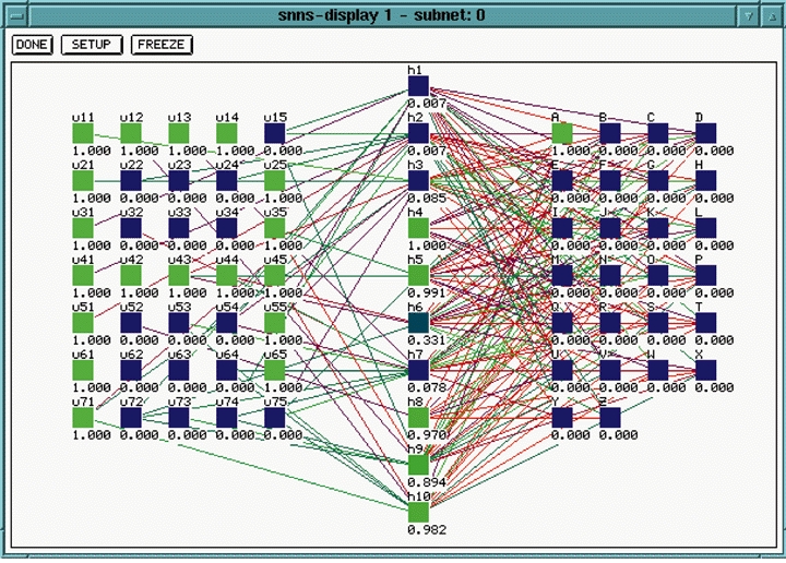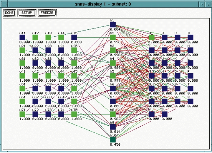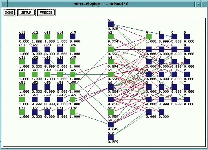 The easiest way to get started with SNNS is to experiment with one of the example networks that comes with the distribution. One of these is a solution to the character recognition problem discussed at the beginning of this article.
