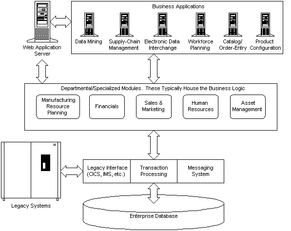 ERP vendors are pushing the myth that an enterprise needs a massive system running on a tight cluster of machines for effective computing. The Internet is but one recent development that proves distributed computing can be just as productive as highly centralized computing. Departmental systems are increasingly feasible in the age of Intranets, driven by such interoperability standards as XML, CORBA and LDAP. Databases are now almost all reliably SQL, a more recent phenomenon than one might imagine, and many domain areas are developing forms and process standards for Electronic Data Interchange (EDI) and other initiatives.