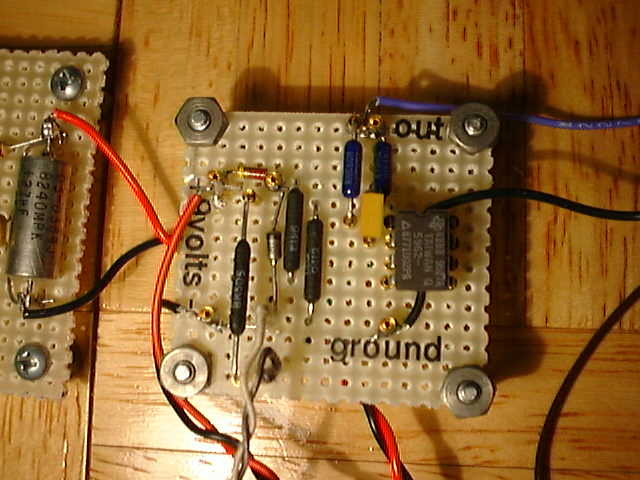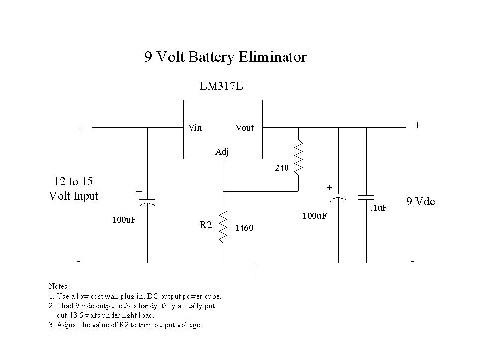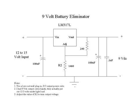Both the temperature conversion circuit and the multimeter run from 9-volt batteries. Since I wanted to take data for weeks at a time without worrying about them going dead, I designed and built a couple of simple power supplies using adjustable voltage regulators and the cube transformers that plug in the wall, to act as battery eliminators. These also fit on a piece of vector board a little over one square inch. (See Figure 4.)