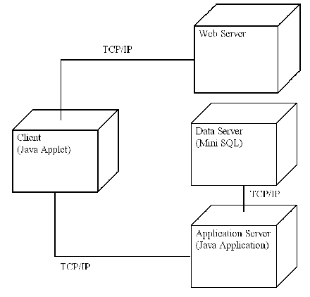 The application's middle tier uses Blackdown's Linux Port Java Development Kit 1.2.2, release candidate 4, and CIE's mSQL-JDBC driver for JDBC 2.0. The Java tutorial is one of many excellent places to learn how to access databases from within a Java program; that's why only the specific issues on accessing MiniSQL will be dealt with here.