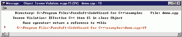 Enter CodeWizard by ParaSoft, a tool that searches through your code for violations of good C++ coding standards. Based on programming ideas from Scott Meyers' books Effective C++ and More Effective C++, CodeWizard automatically enforces thirty-five descriptive rules or “items” for effective C++ programming—standards that significantly reduce the number of errors in your code. In addition to Meyers' rules, ParaSoft has included a list of thirty-six additional items.