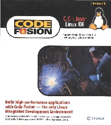 Code Fusion v1.0 supports Caldera 2.2, Red Hat 5.2/6.0 and SuSE 6.1 Linux distributions. This product requires a Pentium with memory—Cygnus recommends 64MB. This product also needs about 200MB of free disk space to install. My Caldera distribution mounts the Code Fusion CD-ROM as a non-executable device. A README file containing guidance on mounting an executable CD-ROM device is included.